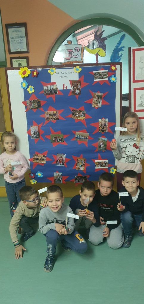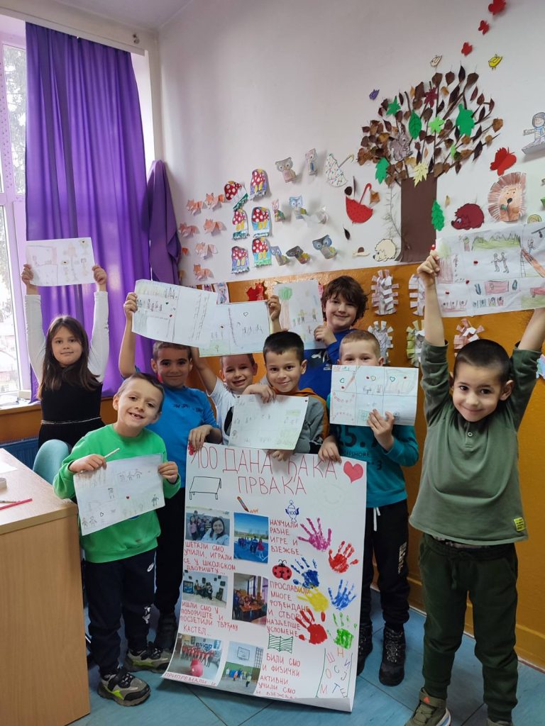 Дана 09.02,2024. године , првачићи наше школе прославили су свој 100. дан у школи. У веселој и радној атмосфери заједно са учитељицама, цртали су и правили паное са фотографијама на којима су забиљежени тренуци протеклих 100. дана игре, рада и среће.